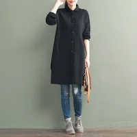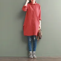 Johnature Women Cotton Linen Dress Patchwork Long Sleeve 2017 Spring New Plus Size Women Striped Shirt Dress Casual Vintage BlueUSD 26.57/piece